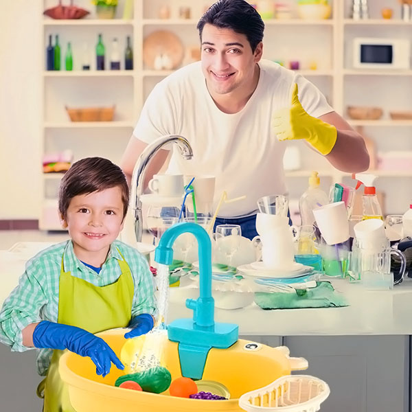 🧼 Incentiva a independência – As crianças podem lavar a loiça, os legumes e os brinquedos