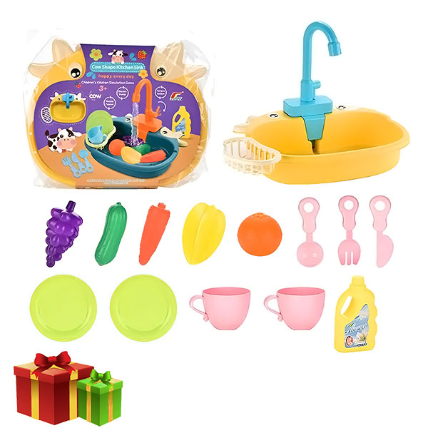 📦 Está incluído: Pia, torneira, vegetais, frutas, pratos, sabão, cesto de drenagem